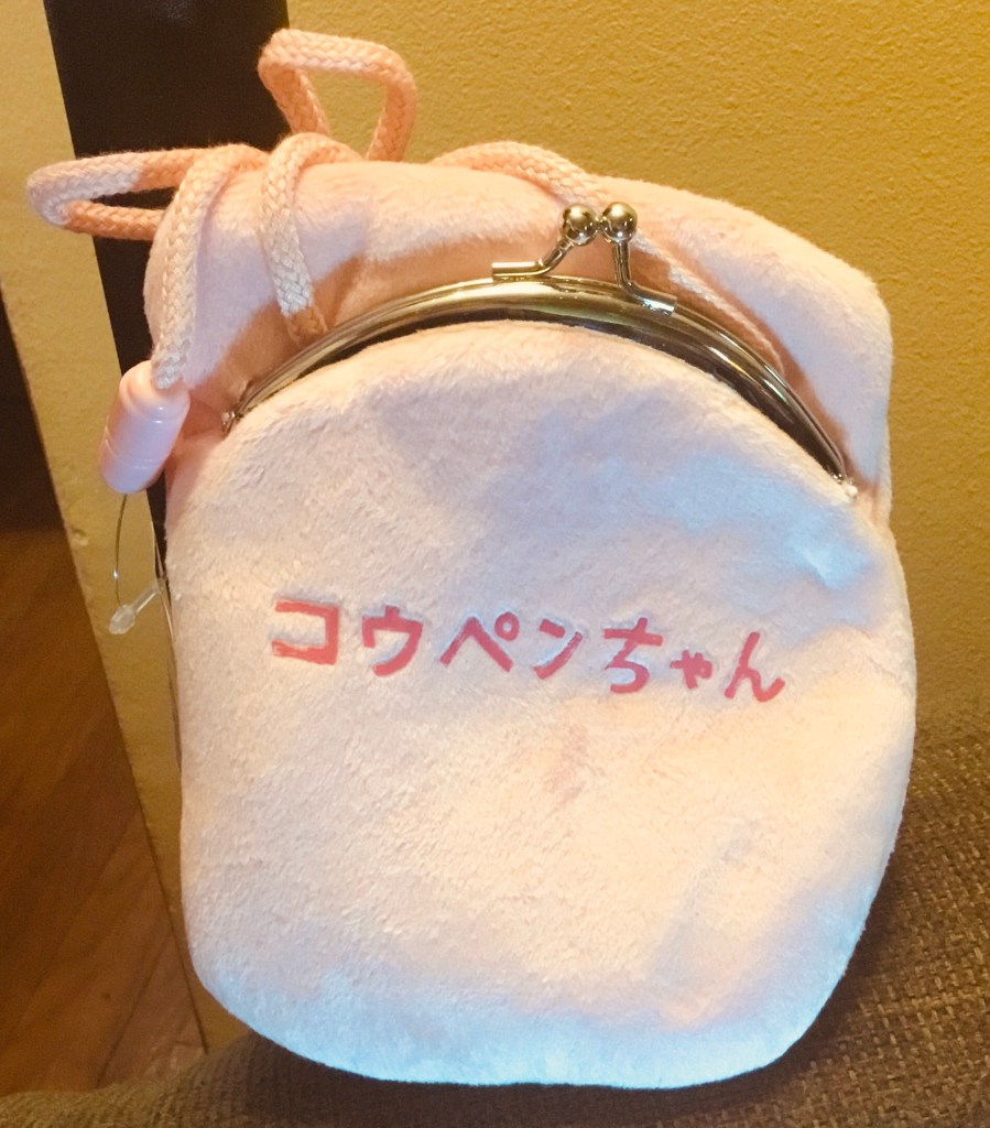 This is very nice, soft plushy material. And although I expected a drawstring bag, it’s instead a….large coin purse? Small purse? Whatever it is, it’s cute.