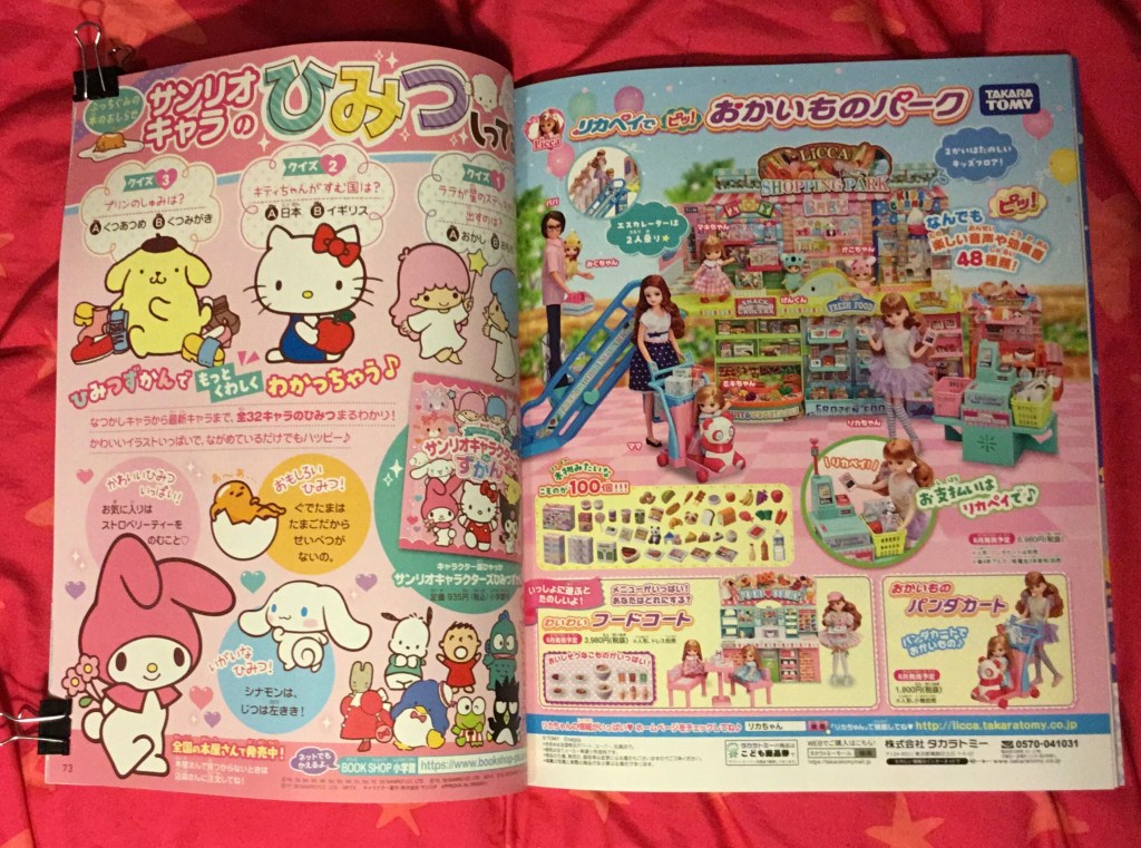 I also wanted to share just how cool Japanese magazines can be, especially the ones for kids if you’re a fan of character art and goods. This particular magazine is called Pucchigumi, where pucchi is the Japanese way of saying petit (French for small) and gumi is a group of people. It’s published by Shogakukan and advertises itself as being for girls in years 1, 2, and 3 of elementary school.