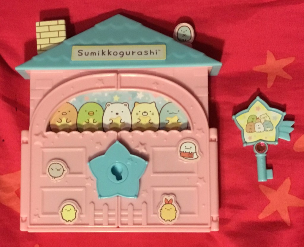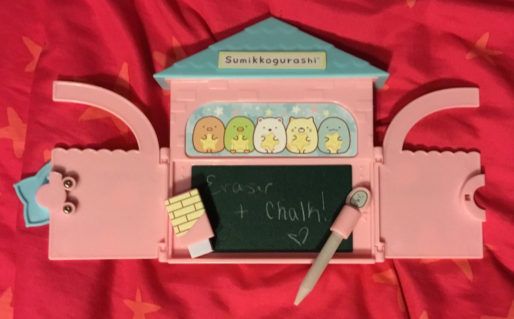 Beyond that, this furoku really is just plain old cute. I liked that there was a certain amount of choice with sticker placement, and then quite a lot of stickers left over in addition to those inside the magazine. I would have been tickled pink by the fact that it locks if I had gotten this as a kid; I always found treasure chests and such really cool. And though it’s only a couple of inches tall, the chalkboard surface, eraser (the chimney) and the chalk pen (the top of which is the Tapioca pearl on the upper right) all worked better than I would have expected from a comparable kids product.