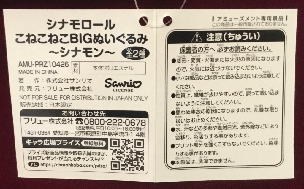 My enthusiasm for Tokyo Catch has probably peaked (I may write more on why soon), but I still have a few prizes to go over! Today we’ll talk about the Cinnamoroll Konekoneko Big Plush.