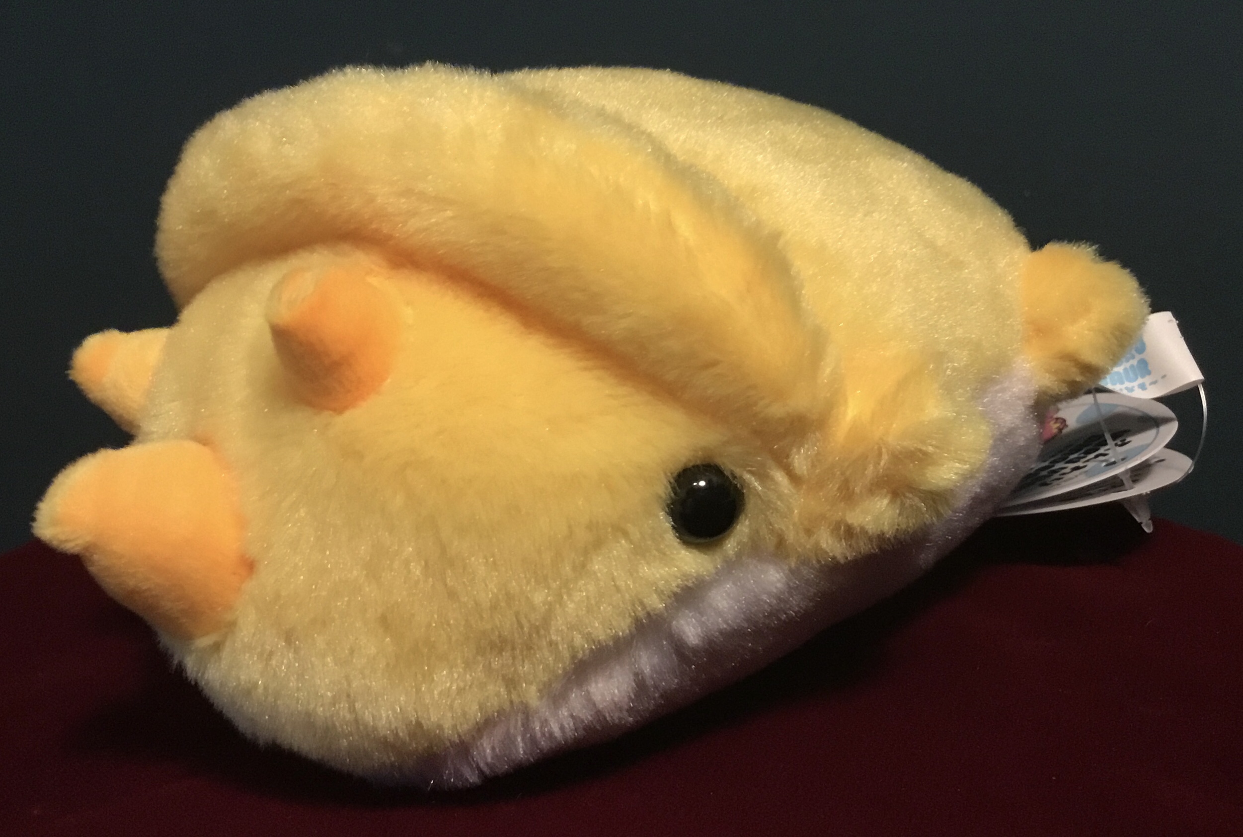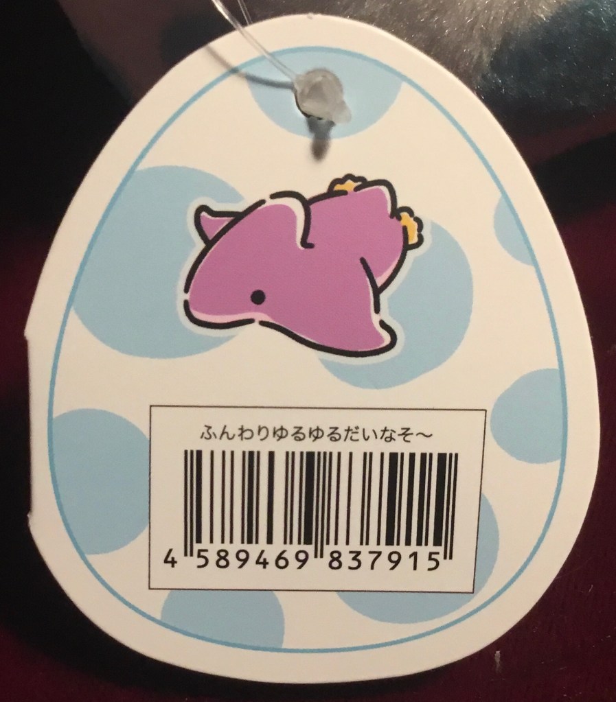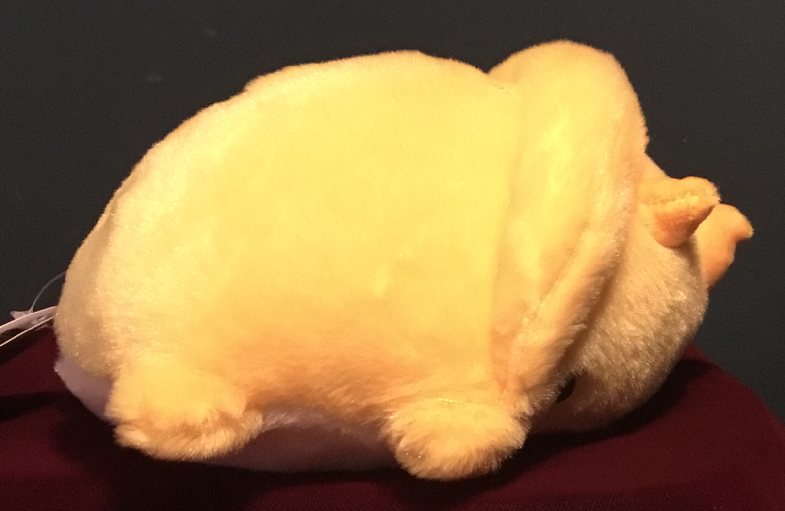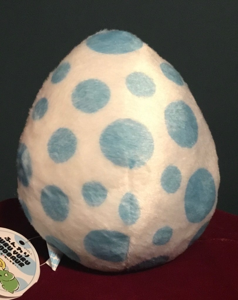 We begin with the prize I figure you use to bounce others off of in the crane game: the egg. And it sure is, er, an egg. It’s made of what I would call medium quality prize plush, like all of these. That means they are furry a bit like a high quality dog toy (still pleasantly soft, just tangibly not top quality). And, like the rest of them, it measures around five and a half inches tall (or long, or whatever, depending).