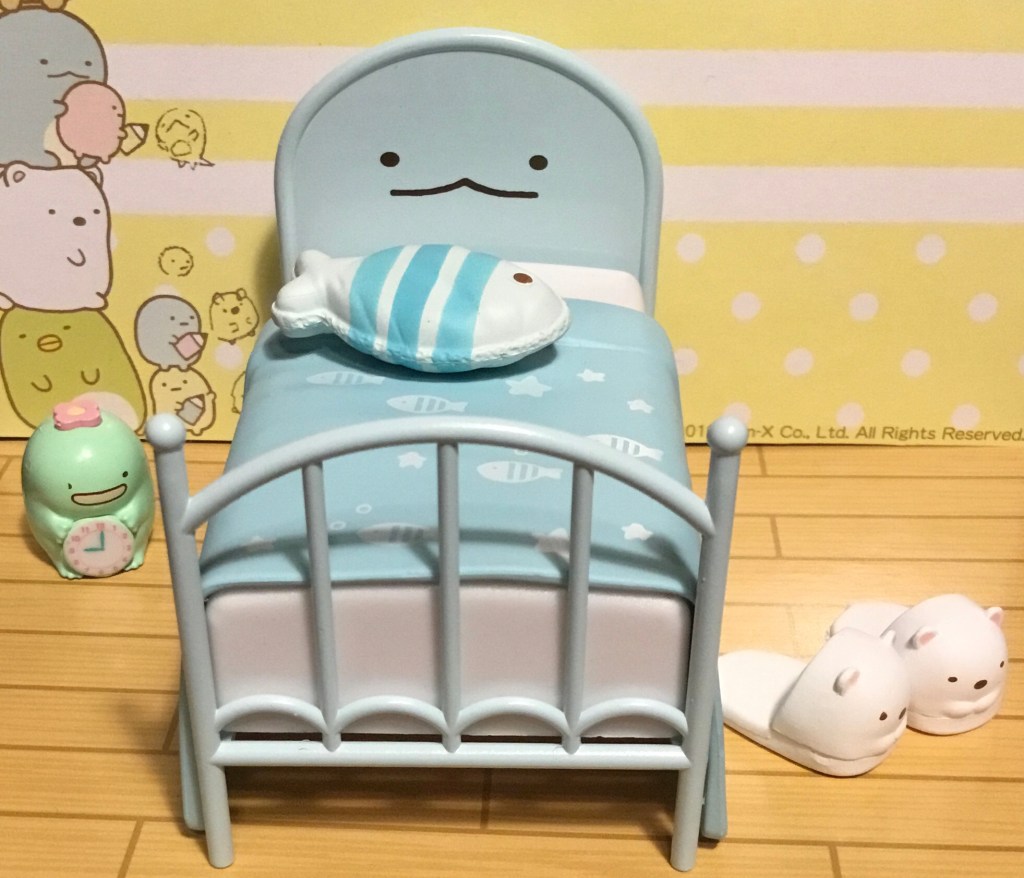 Finally, we arrive at Set Eight: Let’s Have Another Good Day Tomorrow — this one just feels packed full and extra deluxe from the start! The Tokage bed is amazing if a bit brittle-plasticy feeling, and the designs of the Tokage (Honmono) clock and Shirokuma slippers are just fine. The fish cushion is weirdly larger than I thought it would be…