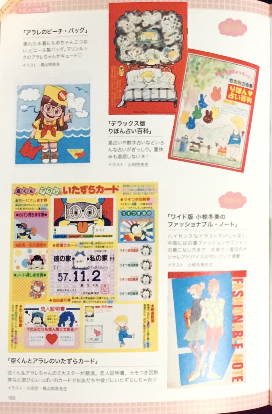 On the left below, I kind of love the “crest seals” by Mayumi Ide (especially the “Don’t Touch Me!). And on the right, check out the pen cup shaped like a post office box done by Mariko Satou in the top right corner, and the amazing design of the Aoi’s Free Space notebook, based on Aoi-Chan Panic! by Izumi Takemoto, who also did the later version of Anmitsu-hime.