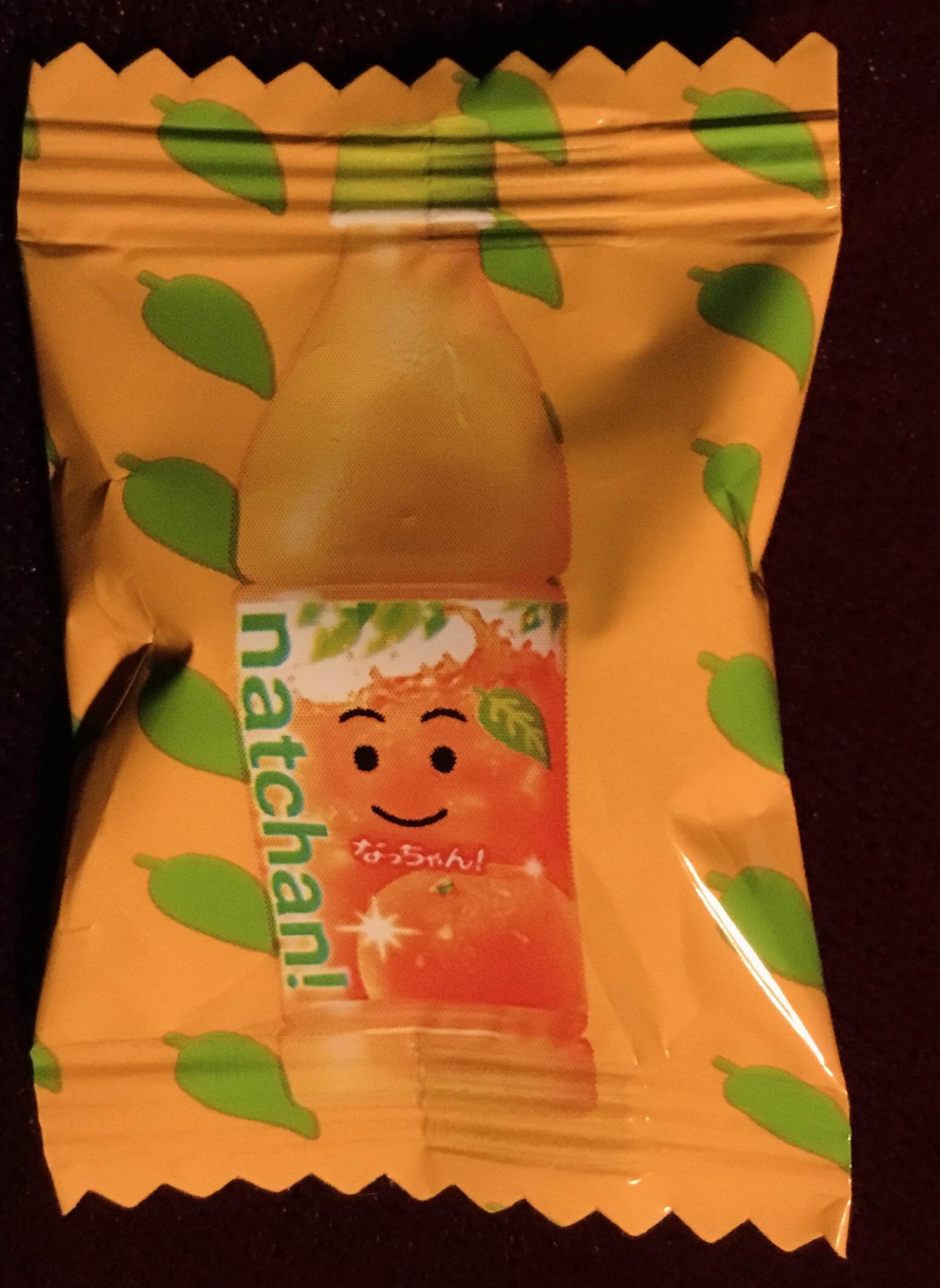 The third one is another neither of us had tried — Natchan is a line of fruit juice, and this represents the orange kind.