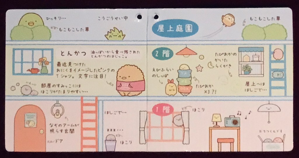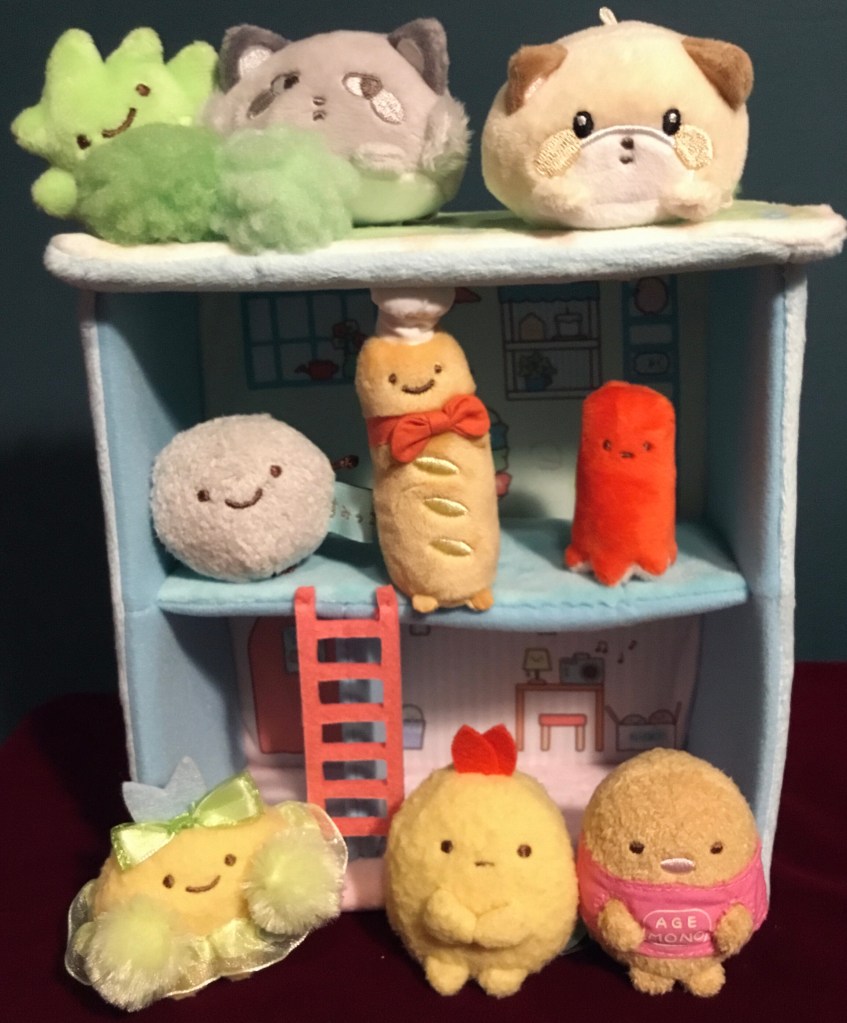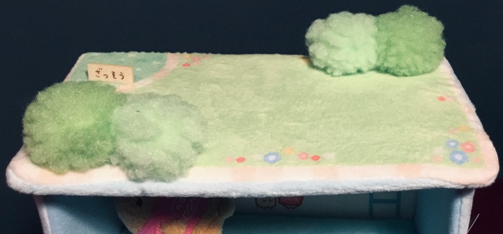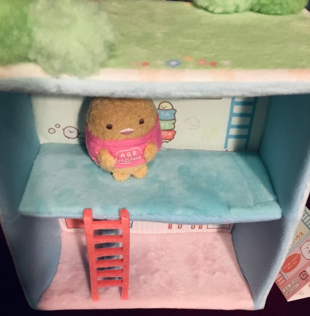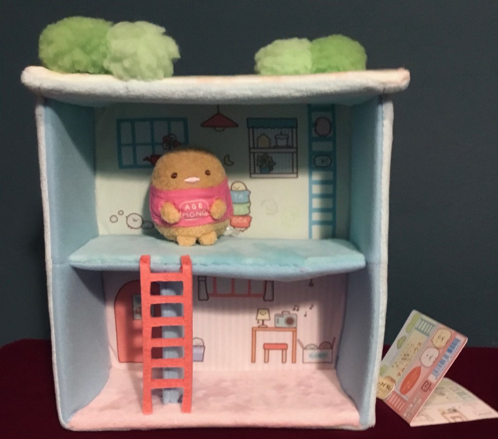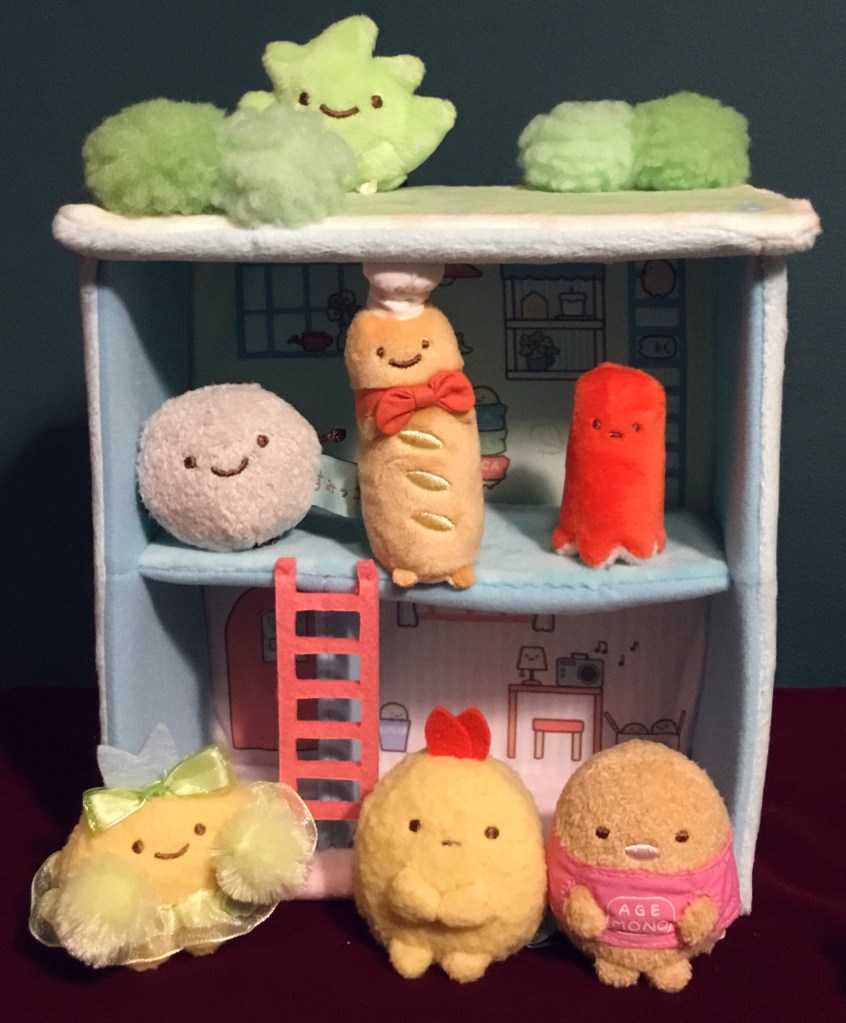 This house is made of simply opulent materials – I’m a sucker for the rose boa. The carpets are downright plush. And this house comes with Tonkatsu in the Agemono (Fried Food) shirt; it’s a standard Sumikko tenori plush, but I can’t resist Tonkatsu, as you may already know.