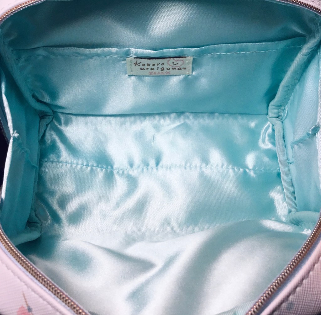 The bag measures about 4.75 inches high and about 6.25 inches wide, which makes it pretty typical of a zipper pouch. What’s not typical — rather so much better than most — is how nice the details are throughout the bag. The inside is blue, with a silky feel and a pocket. I was originally going to say it would have been nice to have a custom zipper pull featuring the heart, but it’s nearly as nice to have it tucked away as a design on the tag.