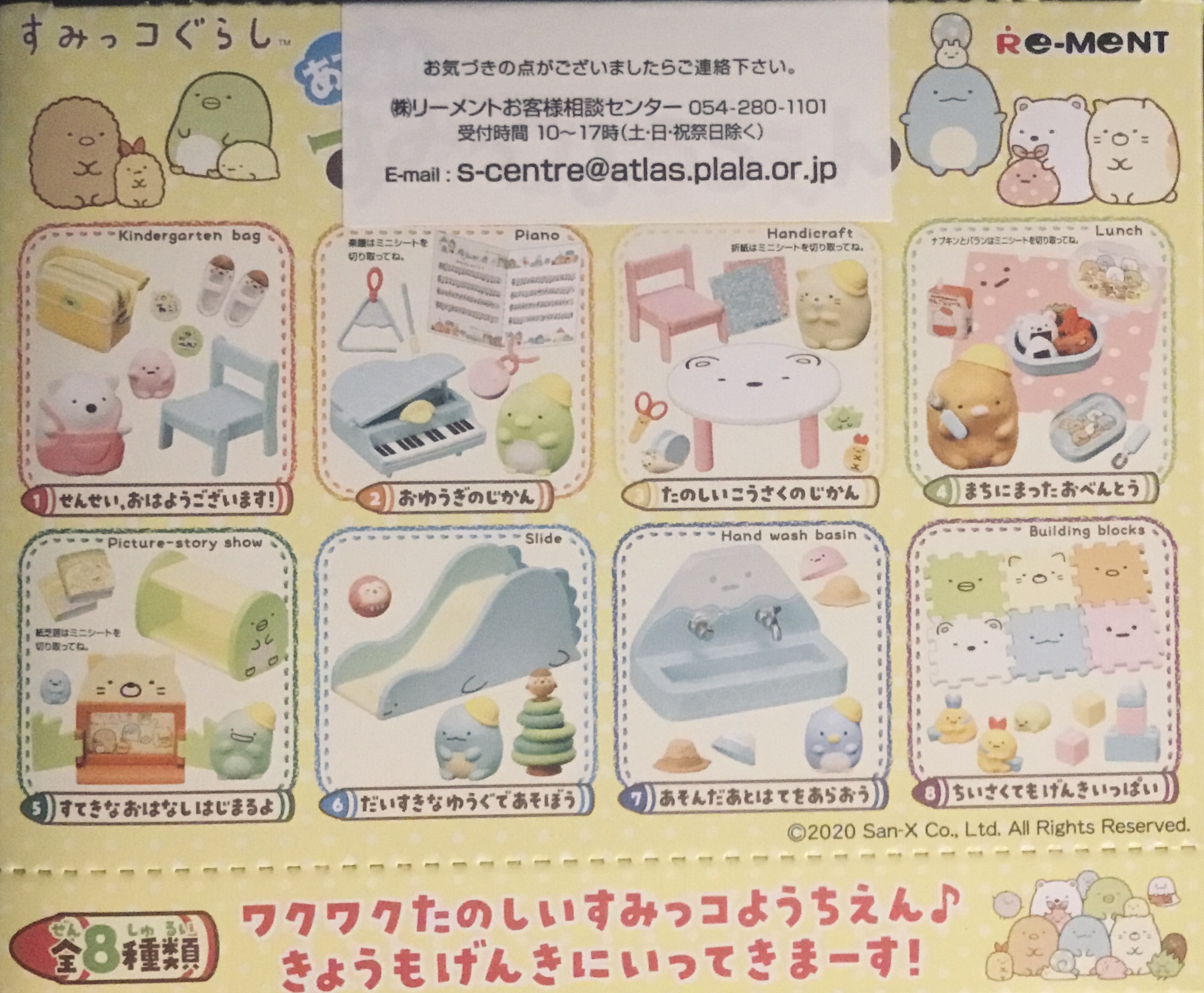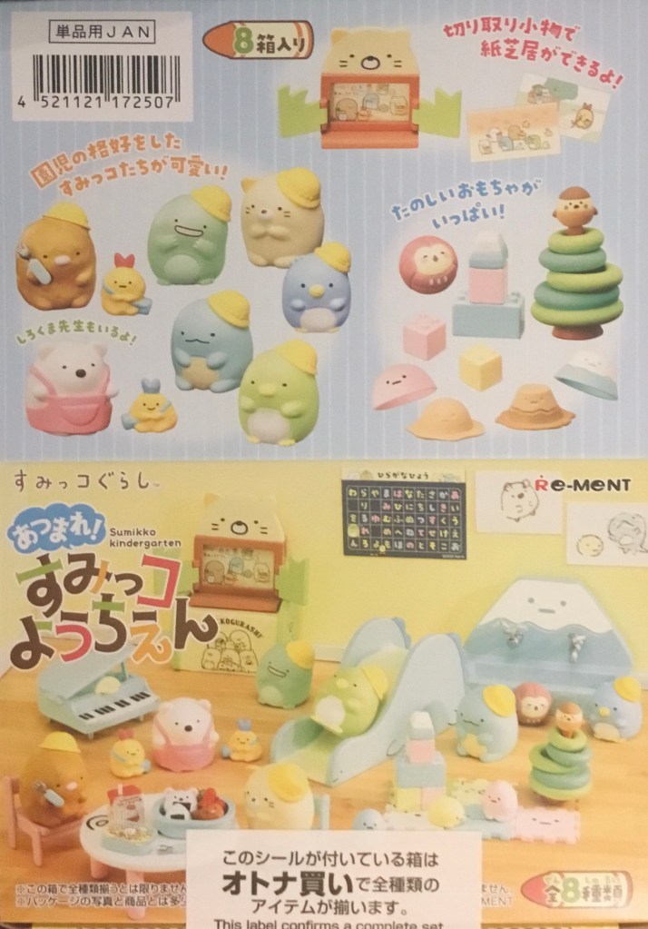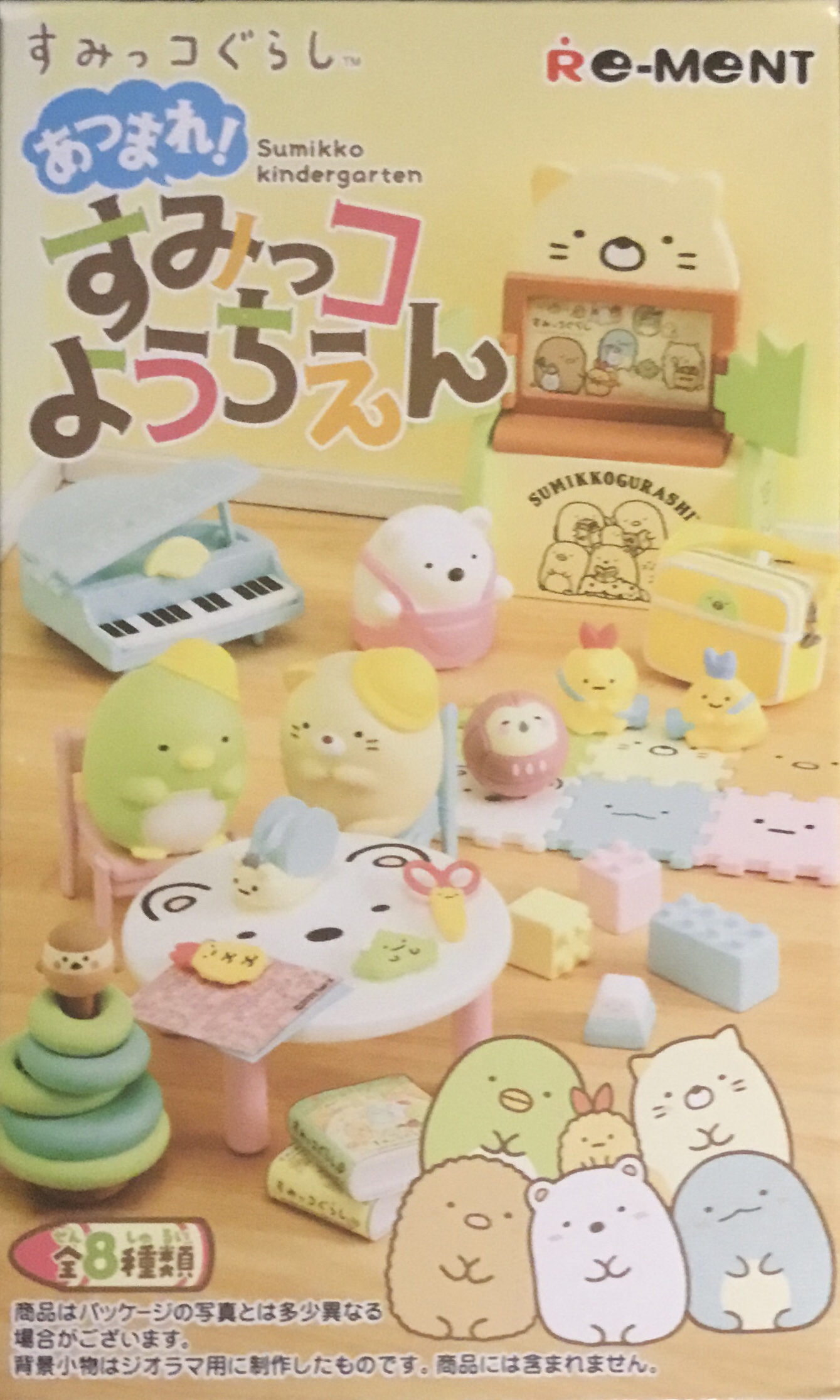Today I’ve got for you another exceptionally nice Re-ment set — this is Atsumare! Sumikko Youchien, which I am going to translate as Line up! Sumikko Kindergarten (even though atsumaru is translated more as to gather or assemble, I figure lining up is the closest thing that doesn’t sound weird…or like they’re superheroes).