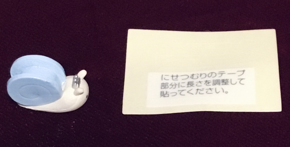 I do wonder why I had to add the tape to Nisetsumuri. They couldn’t have done this with clear plastic? Notice the picture below is extra cruddily taken due to my state of anxiety as I realized I needed to apply tiny, clear stickers to an already pretty small plastic toy.