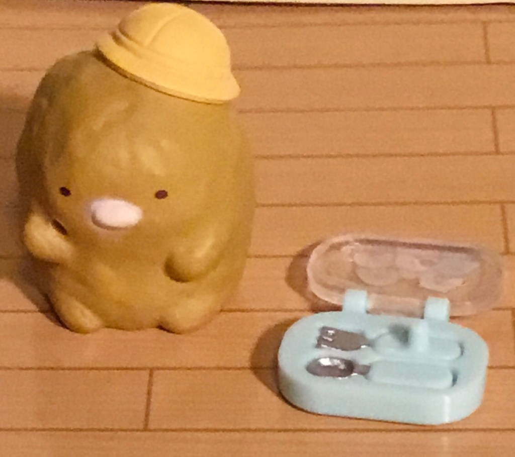 You end up with a weird-looking hole in the figure, but worse is that I can’t close the lid for the silverware case well if you want to put the fork in it. I almost have to be misunderstanding, right? Why isn’t it designed to go in the opposite way, since you apply a sticker to give the case a Sumikko group design?