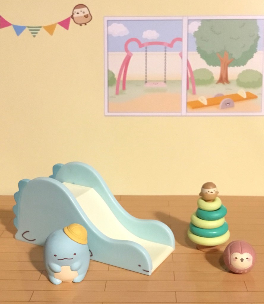 The next, Set Six, Let’s Play with our Favorite Toys, is even better, I think. The slide designed as Tokage’s mother is perfect, and I get the feeling it’s going to get a lot of use in display, but the rest of the set really delivers as well.