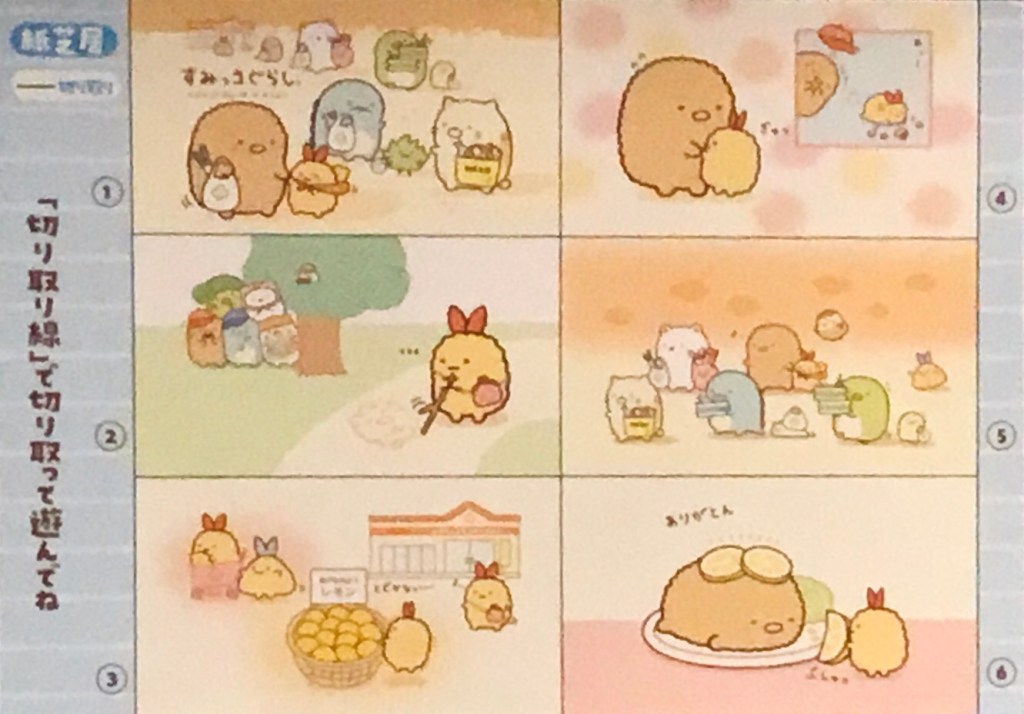 The picture on the television requires cutting the images from the card, which normally I’d complain about, but it’s the story of Ebi Furai no Shippo going to the store, meeting Aji Furai no Shippo, and finally bringing home a lemon for her depressed dad figure Tonkatsu. It’s certainly worth some cutting.