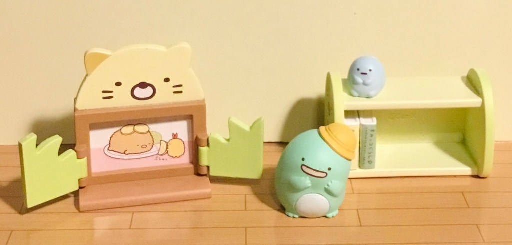 Set Five, A Great Story is Starting, brings things back around to being great. Although I somehow never thought to put the Neko-themed television on top of the bookshelf until I was writing this, I think that’s the idea. Nonetheless everything included is so nice I’m left with a goofy smile like Tokage (Honmono) in the below picture.