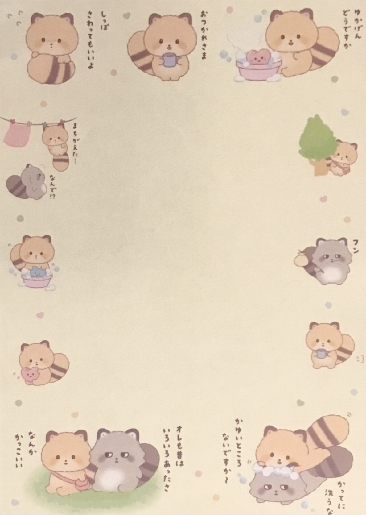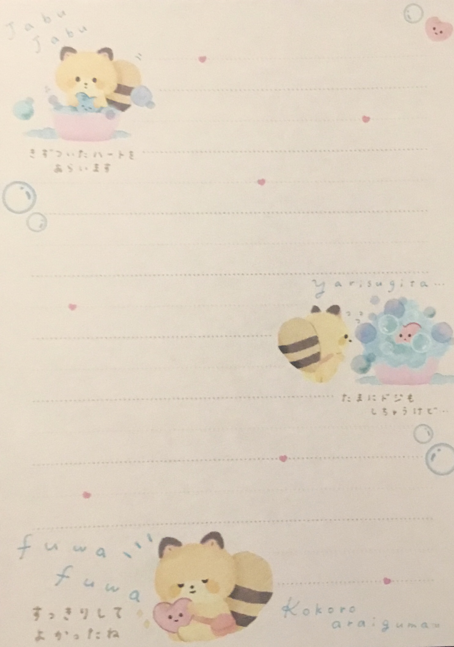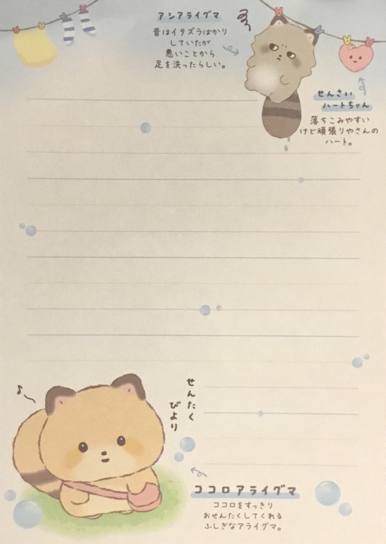 I can’t really imagine a scenario in which I wouldn’t like Kokoroaraiguma goods. On my last amiami order, I managed to pick up these two notepads (about six inches high and four inches wide) and am so pleased with them I just mostly wanted to show how cute they are, with a bit of translation here and there.