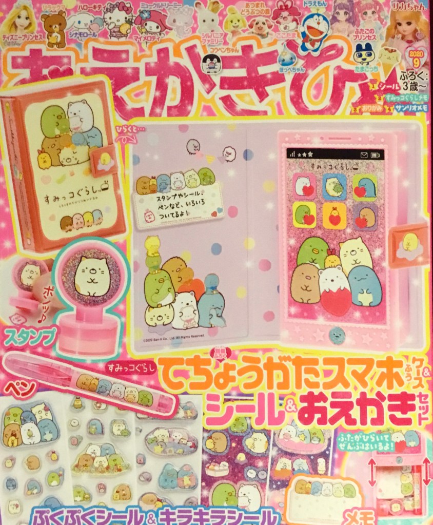 Here’s yet another kids’ magazine from Japan with yet another set of Sumikko Gurashi furoku that still manages to stick out from the competition just by being so plentiful. First, though, let’s discuss the magazine content for the September 2020 Oekaki Hime!