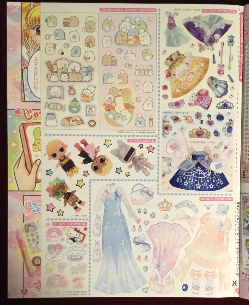 –There are dresses for them on the sticker sheet! Not to mention two different designs of Sumikko (including even more dagashi, which is awesome) but also some Sanrio goodness.