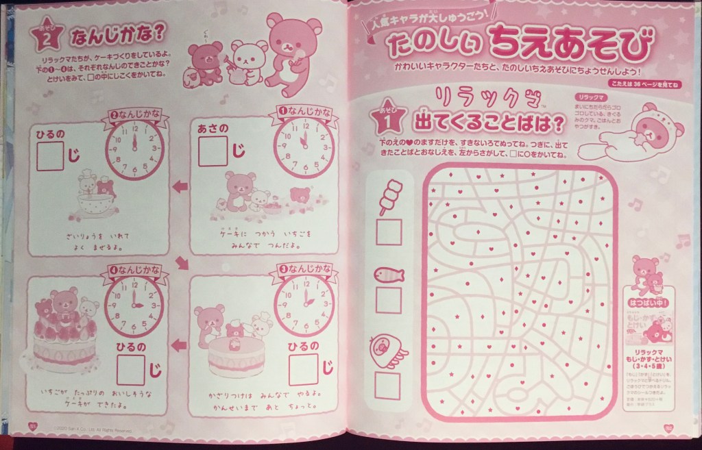 And you can learn to tell time with Rilakkuma — I just can’t resist him in his little otter getup, so I had to include this here.