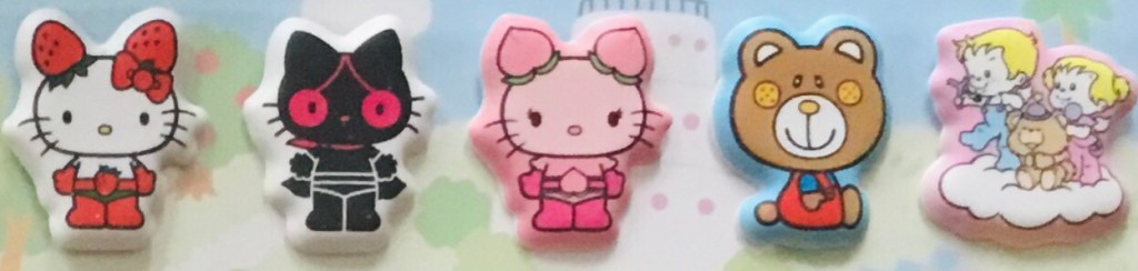 - Hello Kitty’s Ultraman-style alter ego (いちご ichigo means strawberry). The two characters next to her are from the same series.