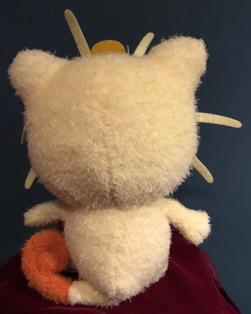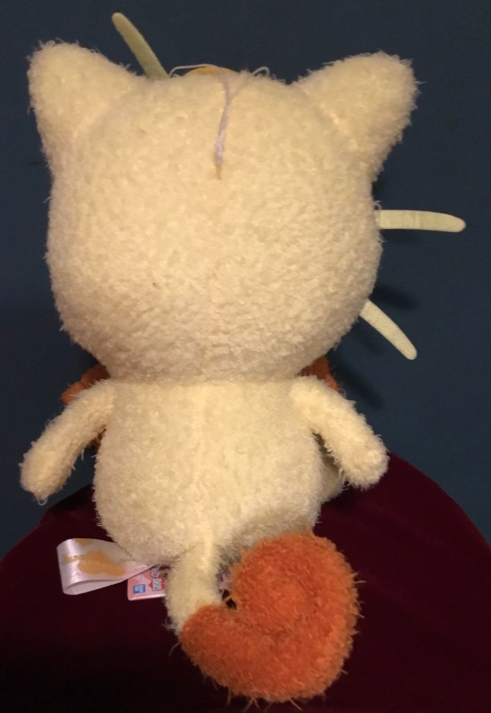 This first plush is from a collection I’ve discussed on here before — the Poke Hug Huuuge plush where I’d won Gardie/Growlithe (trying to win Nyaasu!). Like that one, this measures about eight and a half inches tall (depending on where you stand on measuring his koban and whiskers).