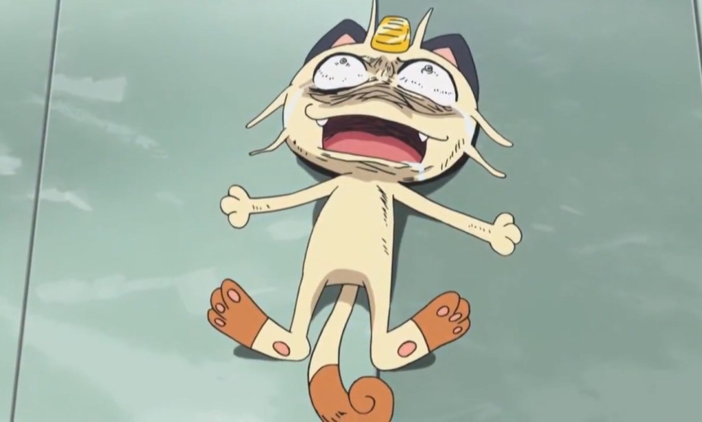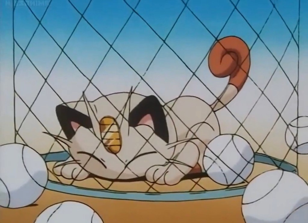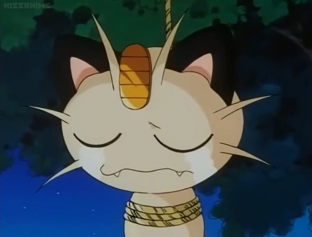 Pardon me if I do a little philosophizing along with the usual comments today, but geez my little Pokemon favorite Nyaasu (Meowth) never gets a break. It’s bad enough that in the anime he’s pretty much guaranteed to have his heart broken