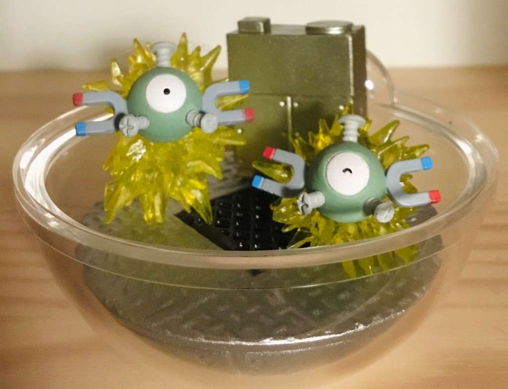 The last set features Coil in Japanese — Magnemite in English, a name I think I might prefer. I’m a fan of Coil’s look (it’s why I covet Renji’s shirt from Pokemon Journeys so much) and this terrarium really stands out due to its striking design (though it’s rather hard to get the Coil-attached parts to stand and stay up).