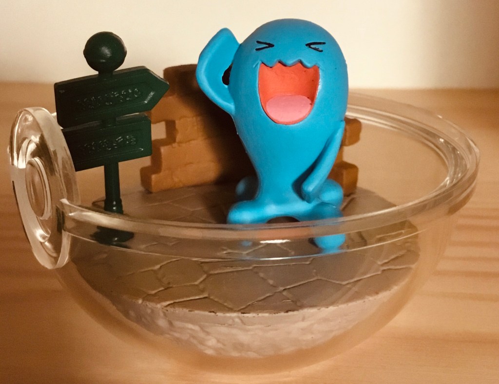 I’ve got a personal rule not to buy any of these terrarium sets if I don’t absolutely love at least one Pokemon in them, like at favorite levels, and that Pokemon in this particular set was of course Sounansu/Wobbuffet. How can I not love a Team Rocket Pokemon?! I recently rewatched the episode where Musashi first got him, and I’d forgotten that he was an accidental trade. But now I love how he’s become such an authentic part of the team.