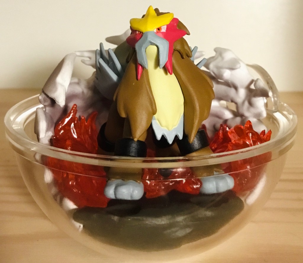 Next, Entei is a Legendary Beast related to volcanoes somehow. Yup, that’s about all I know about Entei! If I’m being honest, I wasn’t all that impressed with this terrarium in general. The thing that annoys me the most is that there are clearly indentations for Entei’s feet to fit in, but they always pop up and hover over the spots no matter how I position everything in the Pokeball. Normally I would assume this is just stupidity on my part. But the hubs came up with the same result, so I thought I’d comment on it here.