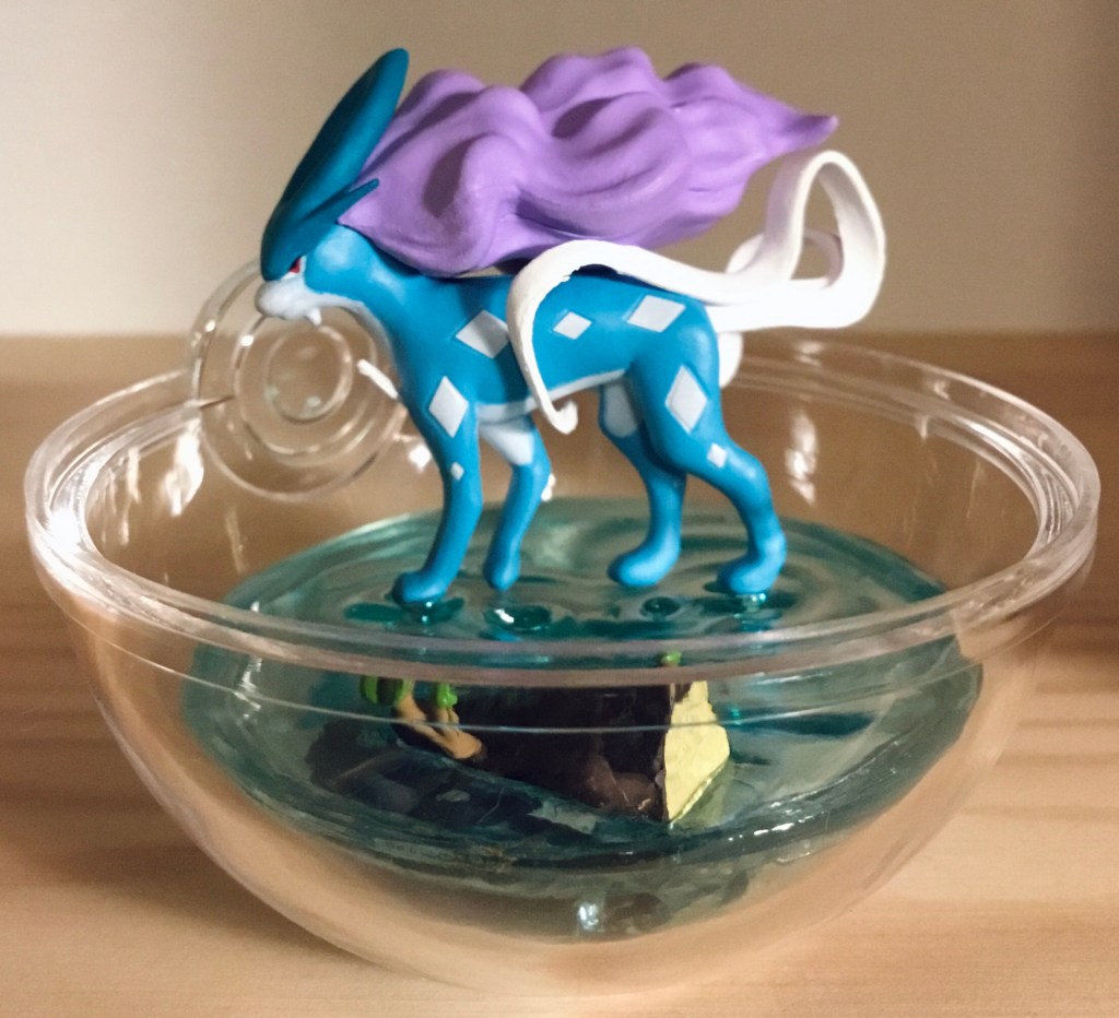 Unfortunately, I wasn’t as impressed with the next terrarium, featuring Suicune. As you can see in the picture below, the feet don’t like to be flush with the water base no matter how much I try to fuss around with it, resulting not only in things looking weird with the “footprints,” but also some balance issues.